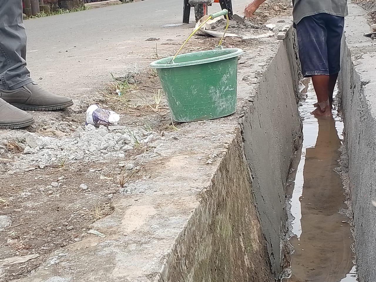 Pasalnya di lokasi kegiatan Tim awak media melihat bangunan drainase lama langsung di plaster tanpa ada pembongkaran dan di tutup dengan plat dekker.