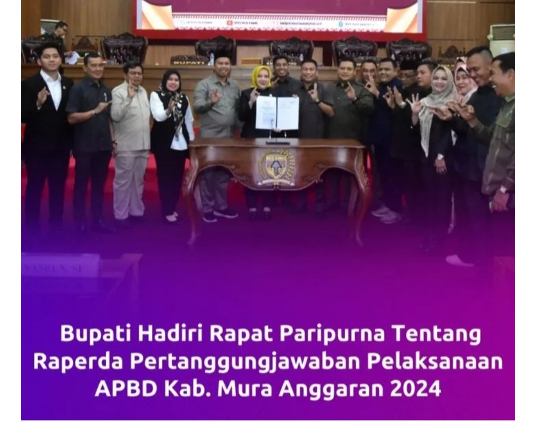 Musi Rawas Molah News.Com – Rapat Paripurna DPRD Kabupaten Musi Rawas dalam Rangka Mendengarkan Laporan Hasil Pembahasan Komisi-Komisi DPRD Terhadap Raperda tentang Pertanggungjawaban Pelaksanaan APBD Kabupaten Musi Rawas Tahun Anggaran 2024 dan Pengambilan Keputusan DPRD serta Mendengarkan Pendapat Akhir Bupati Musi Rawas, bertempat di Ruang Rapat Paripurna DPRD Kabupaten Musi Rawas, Senin (30/06/2025).