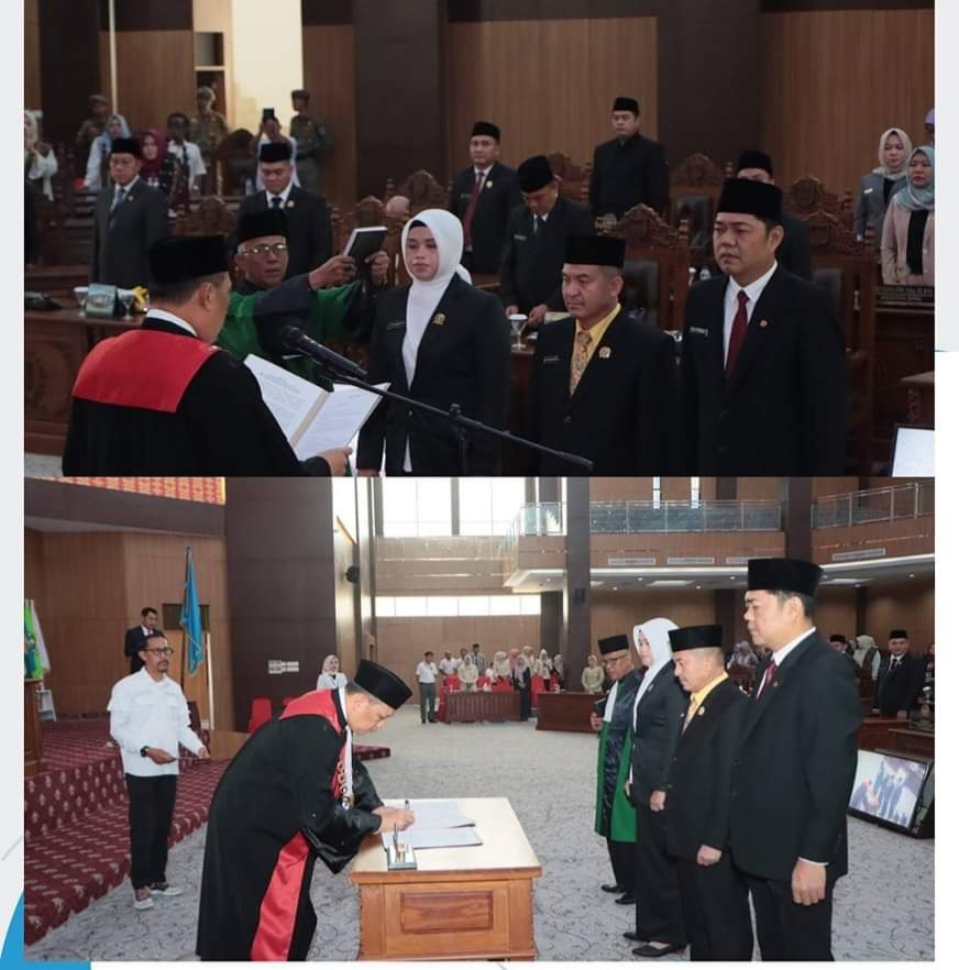 LUBUK LINGGAU,Molah News.Com-Penjabat (Pj) Wali Kota Lubuk Linggau, H Koimudin menghadiri pelantikan dan pengambilan sumpah jabatan Ketua dan Wakil Ketua DPRD Kota Lubuk Linggau periode 2024-2029 di gedung paripurna DPRD Kota Lubuk Linggau, Rabu (23/10/2024).